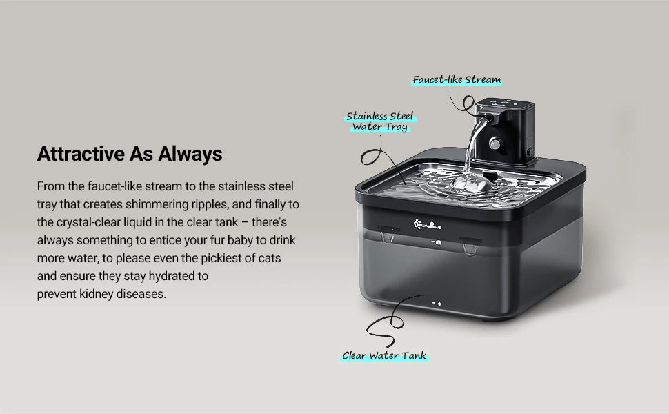 DownyPaws Wireless Cat Water Fountain – 2.5L Stainless Steel Smart Dispenser