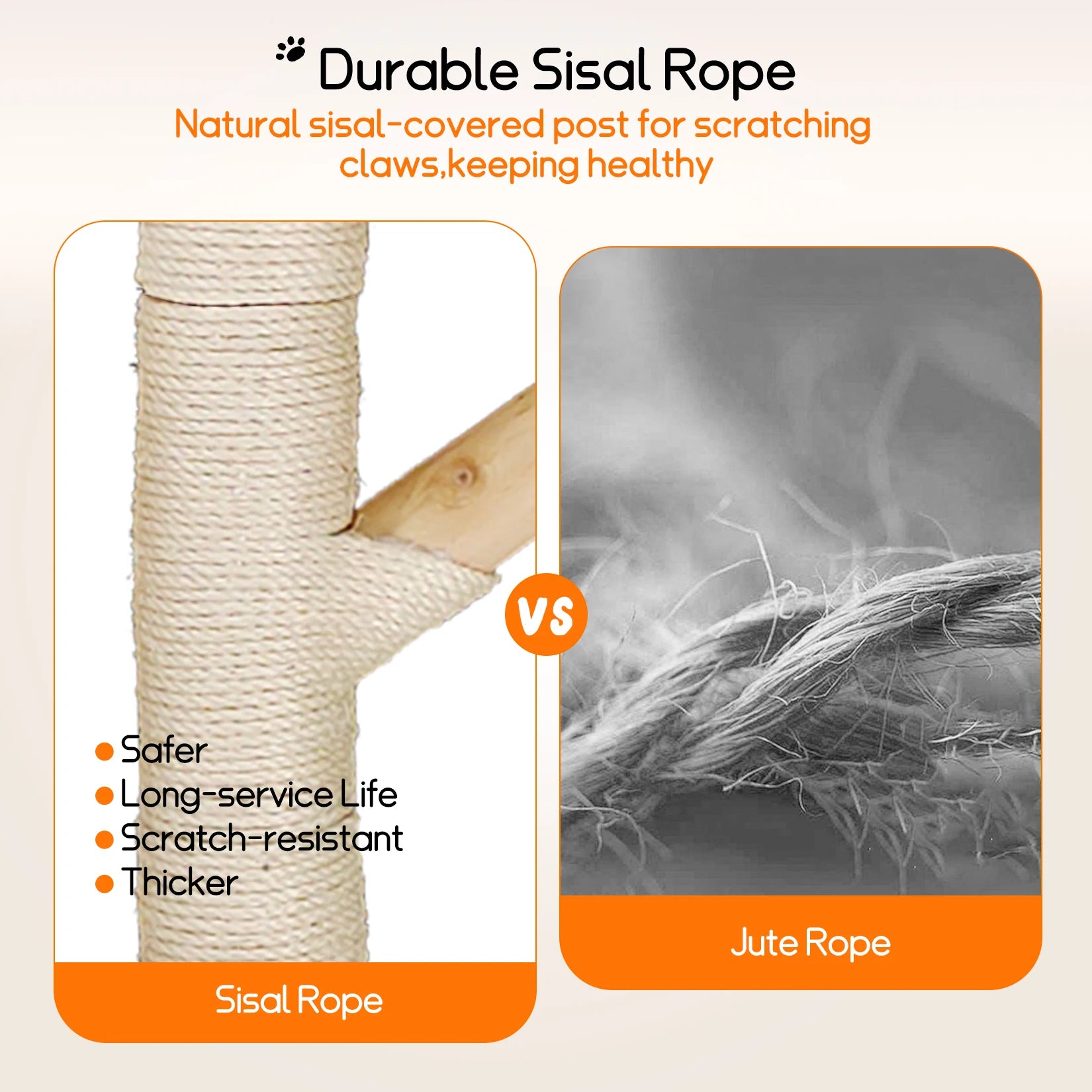 Natural willow post covered in sisal rope for scratching claws, saves your furniture.