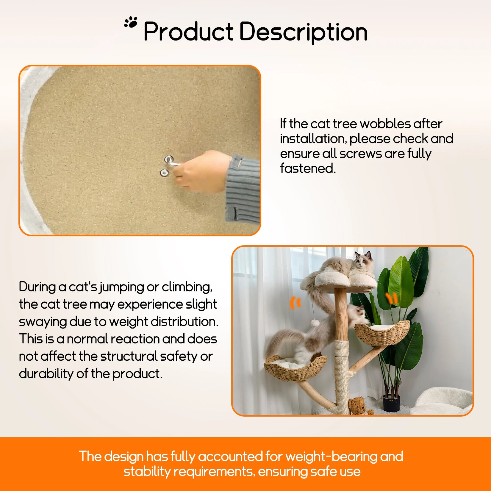 Strictly selected cat tree with natural wood, no change its shape, remains uniqueness.